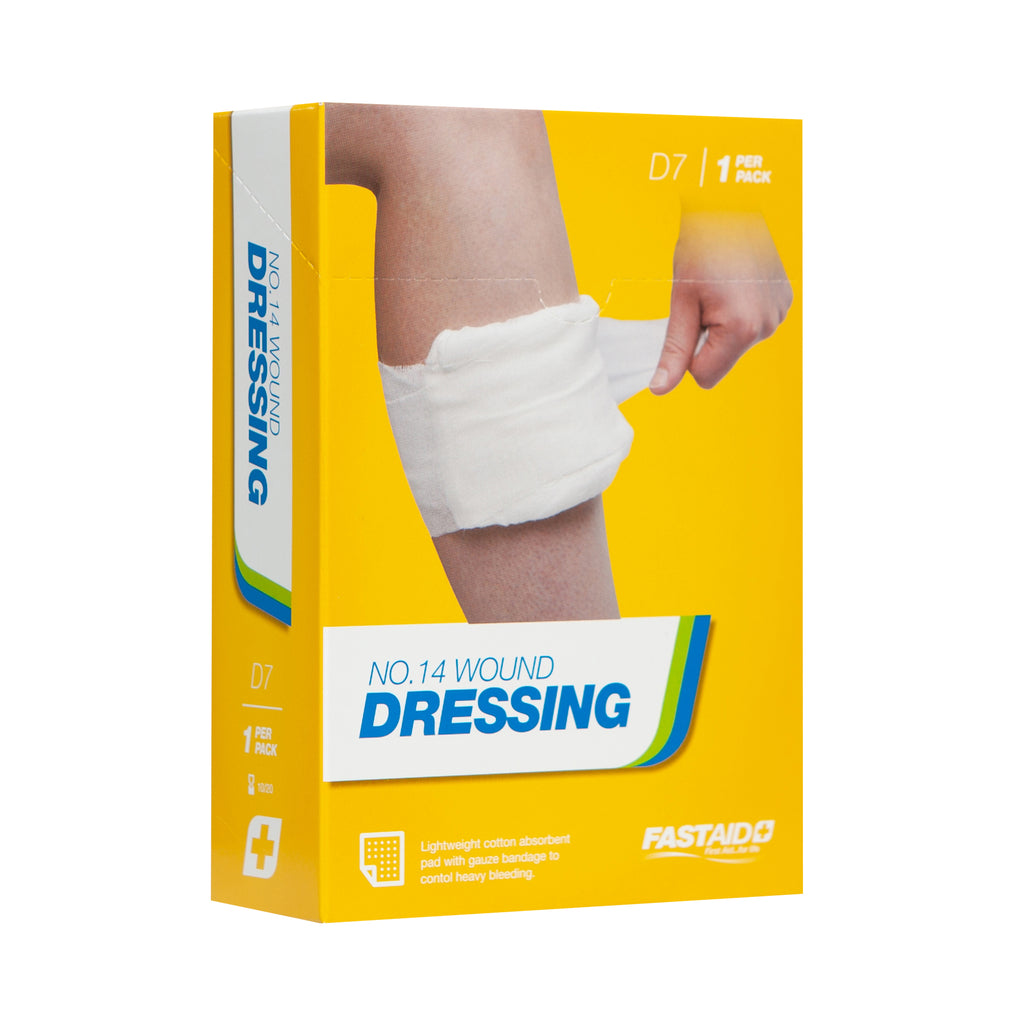 Contains one x No14. wound dressing packed in an easy to open sterile package. Pad size of 10 x 15cm.